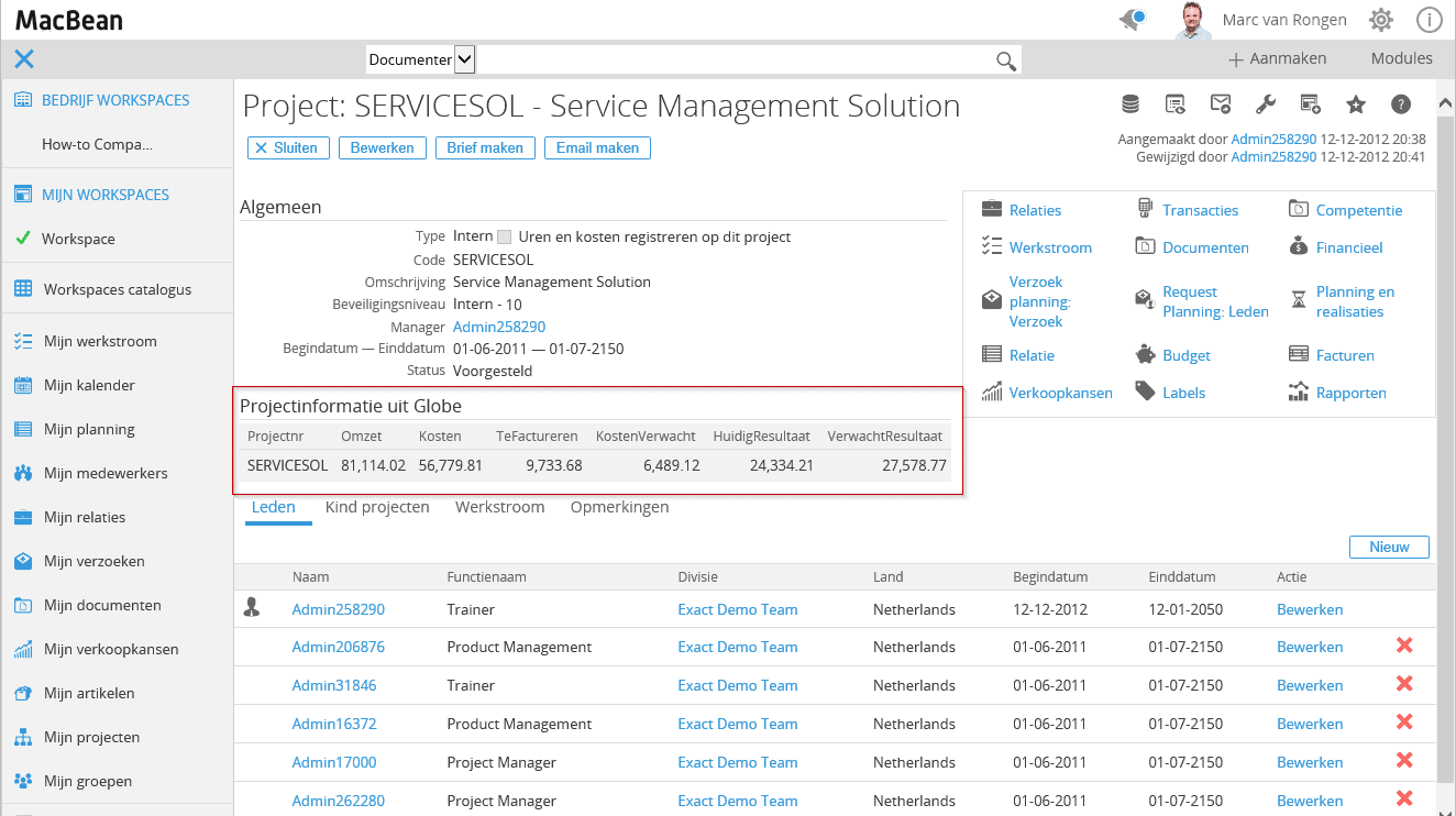 - Maak een EasyList welke de informatie uit de Globe database ophaalt, met het projectnummer als parameter